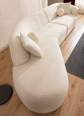 Introducing the Cloe 2-Piece Curved Sectional, a stunning blend of contemporary design and exceptional comfort. Featuring elegant curves, a neutral color palette, and luxurious boucle upholstery, this sectional is the epitome of modern sophistication. The boucle fabric not only brings a rich texture and visual depth but also ensures a soft, inviting surface for ultimate relaxation. Complementing the design, the set comes with two square and two round pillows for added style and comfort.