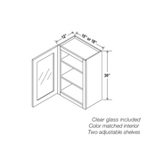 Our 30″ H Gray Shaker Single Wall Cabinet with Glass Door is available in 2 sizes.