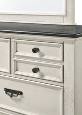 The Sawyer Panel Bedroom Set blends rustic charm with traditional elegance. Finished in a warm cream tone with contrasting brown tops, it creates a cozy yet refined atmosphere. Beadboard paneling, decorative moulding, and coordinated hardware give the collection a timeless, cottage-inspired character that works beautifully in both classic and transitional interiors.