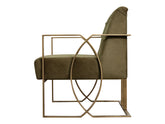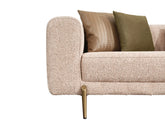 Upholstered in premium woven fabric combining Olive and Cream tones for visual depth and modern appeal