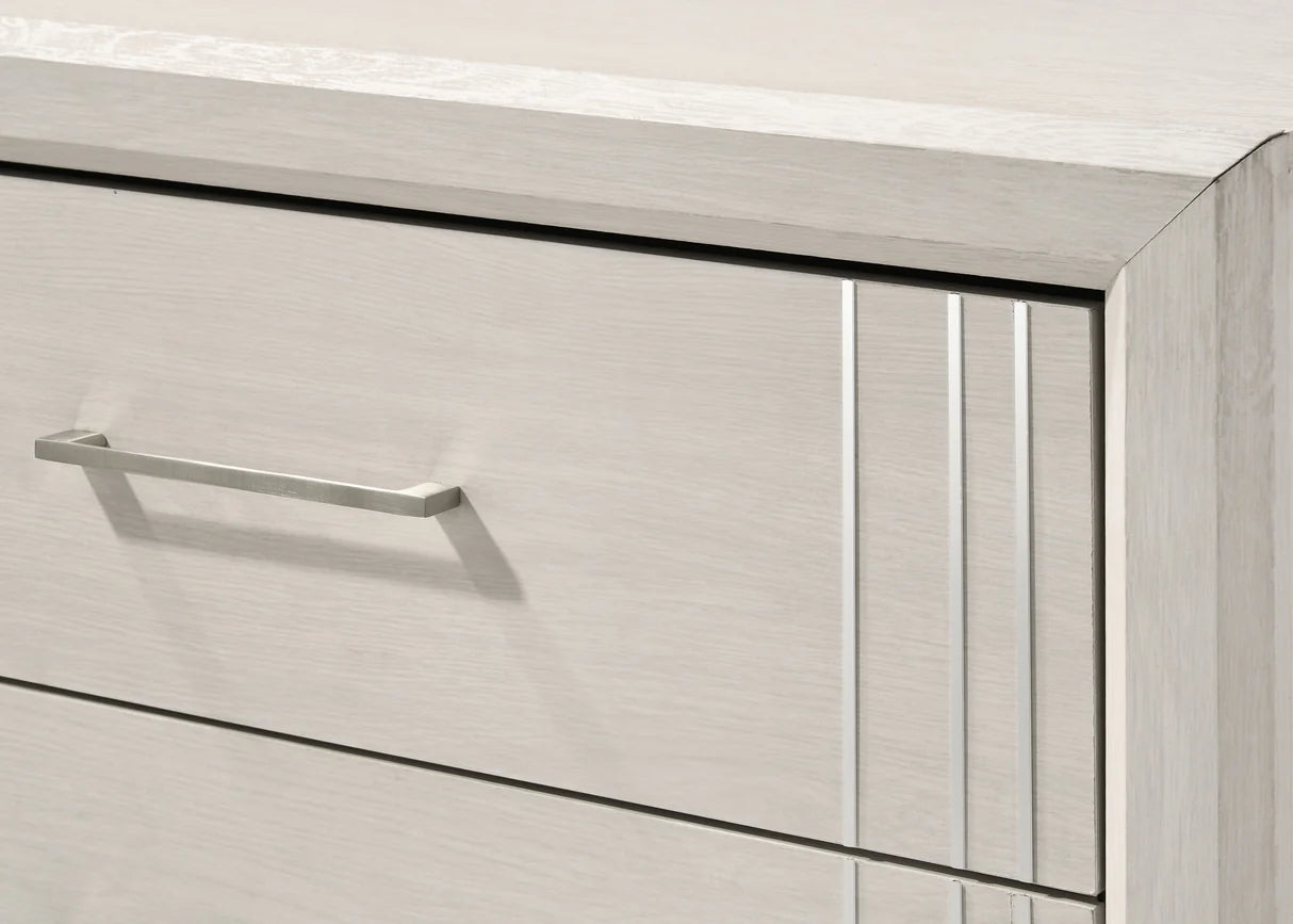 Elegant Silver-Toned Hardware: Sleek metal bar handles and triple-line silver decorative accents provide a stylish, streamlined touch that blends beauty with utility