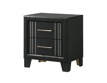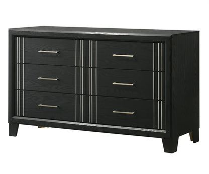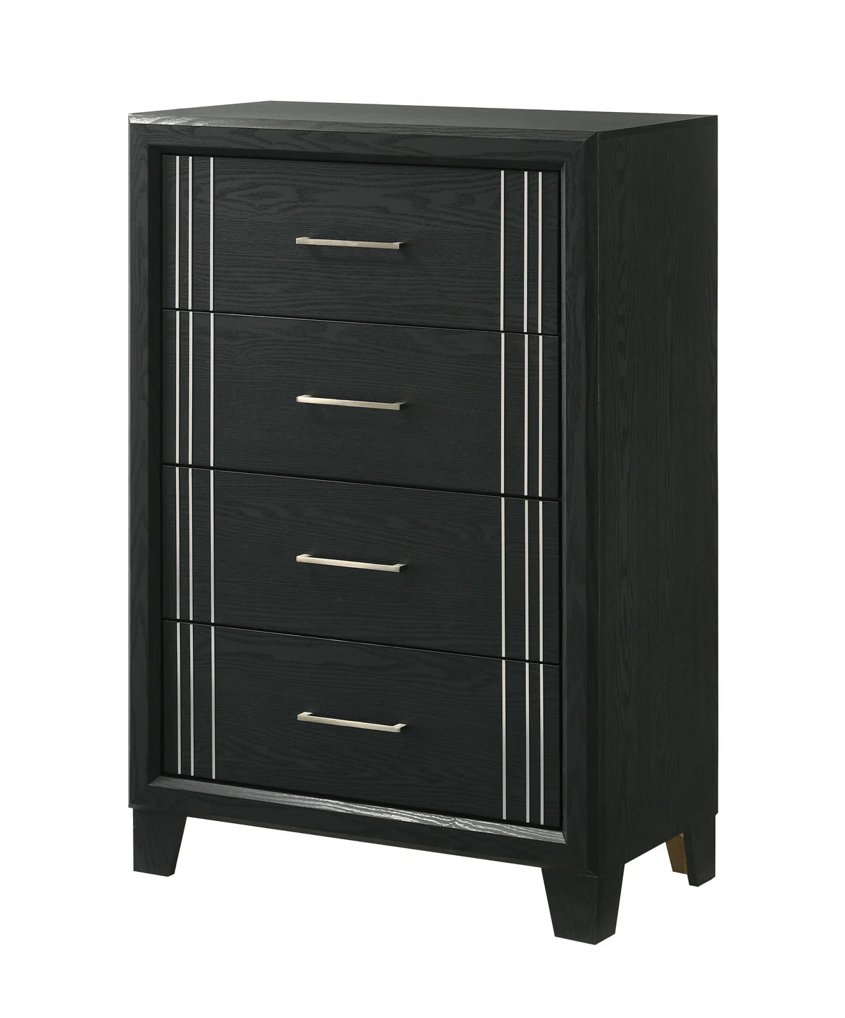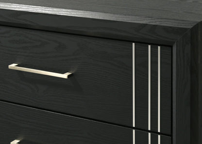 Enter a bedroom that exudes the refined calm of a luxury retreat with the Charlie Charcoal Panel Bedroom Set. Designed for serene evenings and energizing mornings, this collection offers a perfect marriage of modern sophistication and everyday function. Featuring a bold panel headboard in a deep charcoal wood grain finish, accented by sleek silver-toned hardware and decorative metal detailing, it transforms your space into an organized haven of comfort and style, seamlessly fitting urban apartments or spacious homes.