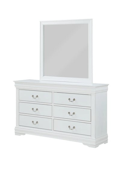 Complete Storage Suite: Includes a matching dresser with mirror, nightstand, and chest, offering ample, well-crafted storage to maintain a clutter-free and organized bedroom.