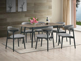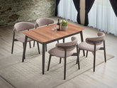The Lanae Dining Room Set is offered in Walnut and Light Brown finishes and comes in either a 5-piece (table + 4 chairs) or 7-piece (table + 6 chairs) configuration. The table includes an extension leaf, expanding seating capacity from 4 to 6 people.