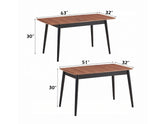 Extendable rectangular dining table with a smooth, elegant Walnut finish.