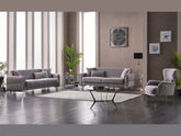 The Royal Living Room Set from Furnia Furniture offers elegant comfort and modern versatility. Available in Light Gray or Cream, this set features four layout options—from compact setups to full family seating—making it a stylish centerpiece for any living room.