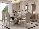 Set Composition | Dining table (1) + Upholstered chairs (6) = 7 pieces |
