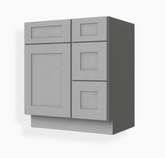 Our Gray Shaker 36″ W Vanity Combo Drawer with Drawers is 34.5″ Tall, 21″ Deep, and 36″ Wide. This cabinet features 3 drawers and is available with drawers on the right or left side.