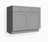 Our Gray Shaker Vanity Combo Cabinet is 34.5″ Tall, 21″ Deep, and available in 3 widths (36″, 42″, 48″). This cabinet features 2 drawers and 2 doors.