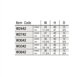 Wall Cabinet Dimensions: 24″W x 42″H x 12″D, 27″W x 42″H x 12″D, 30″W x 42″H x 12″D, 33″W x 42″H x 12″D, 36″W x 42″H x 12″D