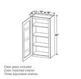 Our 42″ H Gray Shaker Single Wall Cabinet with Glass Door is 42″ in height and available in 2 widths (15″, 18″).