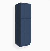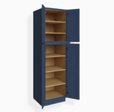 Our Navy Blue Shaker 24″ W Utility Pantry Cabinet is 24″ Wide, 24″ Deep, and available in 3 heights. This Pantry Cabinet features 2 adjustable top shelves and 3 bottom shelves.