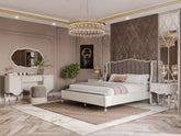 The Monacoba Bedroom Set—also listed as "Monacoba" on Istanbul Furniture—is a European-styled luxury collection, available in Cream upholstery and offered in both King and Queen sizes. Multiple set configurations are available, ranging from 4- to 7-piece arrangements depending on included furniture.