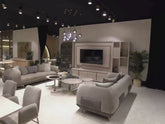 The Porto Mazzi Sofa is a luxury living room piece with a striking presence. With a light brown/beige upholstery, it offers a warm neutral look that complements many interior styles. Designed for comfort and elegance, it is part of a larger collection that includes matching chairs, tables, and other furniture pieces.