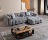 - Luxurious Boucle Fabric: Upholstered in a soft, textured boucle fabric in a warm gray hue, this sectional combines timeless elegance with ultimate comfort.