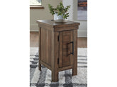 The Moriville Chairside End Table blends rustic charm with everyday functionality. Finished in a warm grayish-brown tone, it features plank-style detailing and a compact design that fits perfectly beside sofas, recliners, or accent chairs. A built-in power outlet and dual USB ports make it a convenient charging station, while the cabinet door offers discreet storage for living-room essentials.
