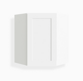 Our 24″ White Shaker Diagonal Corner Wall Cabinet is 24″ wide, 12″ deep, and available in 3 heights – 30″, 36″, and 42″.