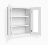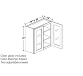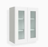 Our 30″ H White Shaker Double Wall Cabinet with Glass Doors is 30″ in height and available in 2 widths (24″, 30″).