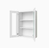 Our 36″ H White Shaker Double Door Wall Cabinet with Glass Door is 36″ in height and available in 2 widths (24″, 30″).