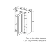 Our White Shaker 36″ H Wall Blind Cabinet is 27″W x 36″H x 12″ D.