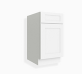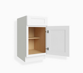 Our White Shaker Base Cabinet with Single Door is 34.5″ tall, 24″ long, and available in 4 widths (12″, 15″, 18″, 21″).