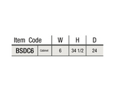 Our White Shaker Base Spice Cabinet with 5 Drawers is 34.5″ in height, 6″ wide, and 24″ deep.