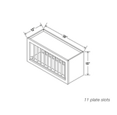 Our White Shaker Plate Rack is 30″W x 15″H x 12″D.