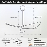 Ventilador de techo negro de 52 pulgadas para interior y exterior con control remoto y motor reversible