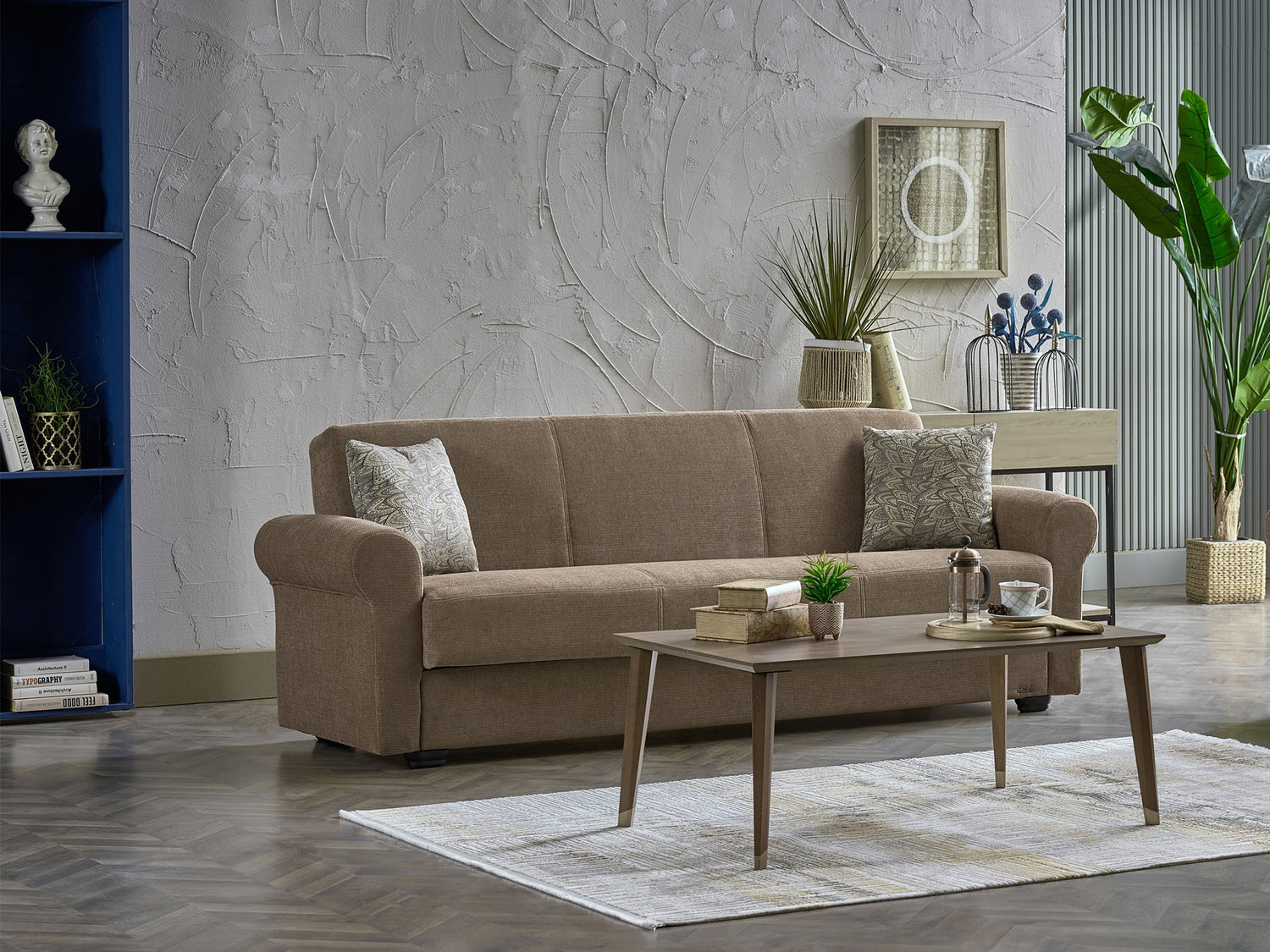 Detalles elegantes : Los pies expuestos con un acabado de imitación de madera completan el estilo.
