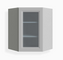 Nuestro gabinete de pared de esquina diagonal Shaker gris de 24″ con puerta de vidrio tiene 24″ de ancho, 24″ de profundidad y está disponible en 3 alturas: 30″, 36″ y 42″.