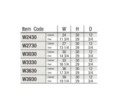 Dimensiones del gabinete: 24″ de ancho x 30″ de alto x 12″ de profundidad, 27″ de ancho x 30″ de alto x 12″ de profundidad, 30″ de ancho x 30″ de alto x 12″ de profundidad, 33″ de ancho x 30″ de alto x 12″ de profundidad, 36″ de ancho x 30″ de alto x 12″ de profundidad, 39″ de ancho x 30″ de alto x 12″ de profundidad