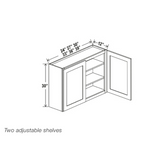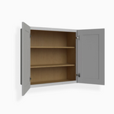 Nuestro gabinete de pared doble Shaker gris de 30″ de alto tiene 30″ de alto y está disponible en 6 anchos (24″, 27″, 30″, 33″, 36″, 39″).