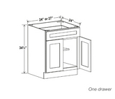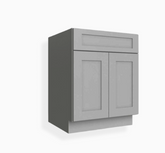 Nuestro gabinete base Shaker gris con puertas dobles mide 34,5″ de alto, 24″ de largo y está disponible en 2 anchos (24″, 27″).