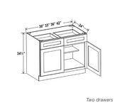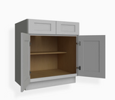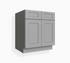 Nuestro gabinete base Shaker gris con puertas dobles y cajones mide 34,5″ de alto, 24″ de largo y está disponible en 4 anchos (30″, 33″, 36″, 42″).
