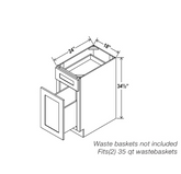 Nuestro gabinete de cesto de basura con base tipo shaker gris tiene 34,5″ de alto, 18″ de ancho y 24″ de profundidad.