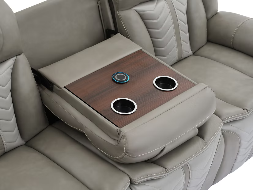 Sofá reclinable con mesa abatible y cargador inalámbrico: 81.5" de ancho x 38.5" de profundidad x 41.5" de alto