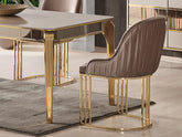 La silla de comedor Ista de 40 cm de ancho es una silla auxiliar compacta pero elegante, de la colección Ista de Istanbul Furniture. Está tapizada en Vizon (gris topo) y es ideal para grupos de asientos pequeños o espacios de comedor reducidos.