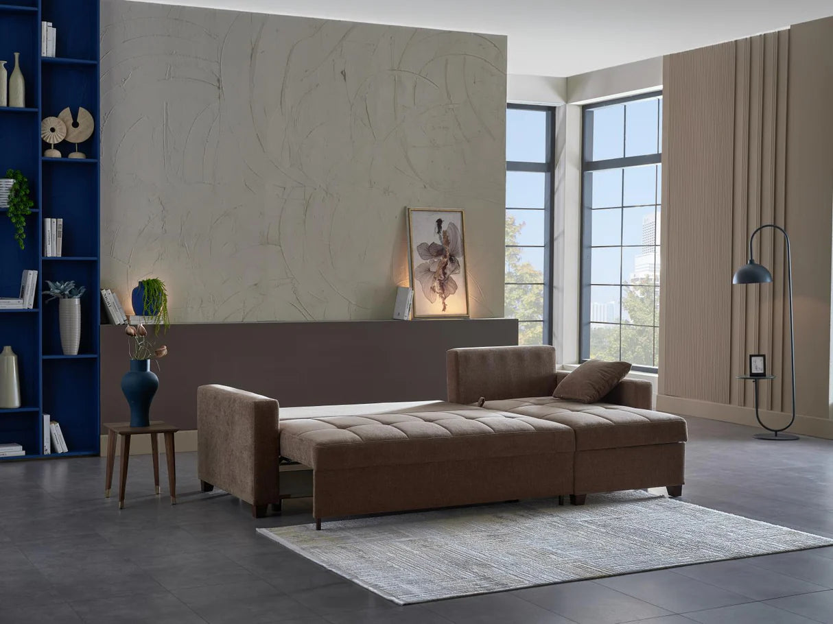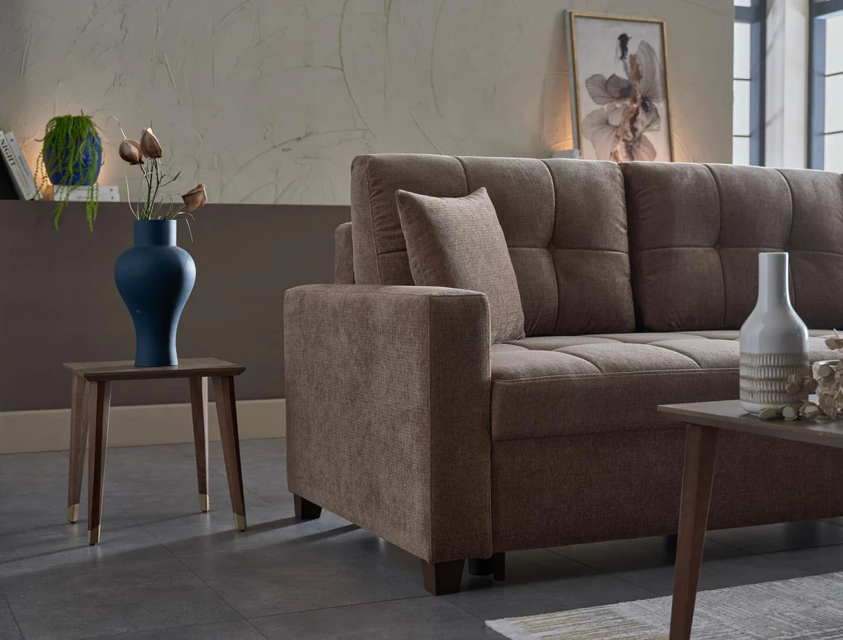 La simplicidad se fusiona con la sofisticación con el Seccional Ivy en Koopsi Basic. Este seccional de 3 piezas aporta una acogedora elegancia a cualquier espacio, con un tono neutro que complementa cualquier estilo de decoración. Su sofá cama incorporado le aporta versatilidad funcional, haciéndolo perfecto tanto para relajarse a diario como para recibir visitas.