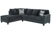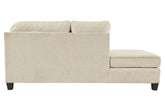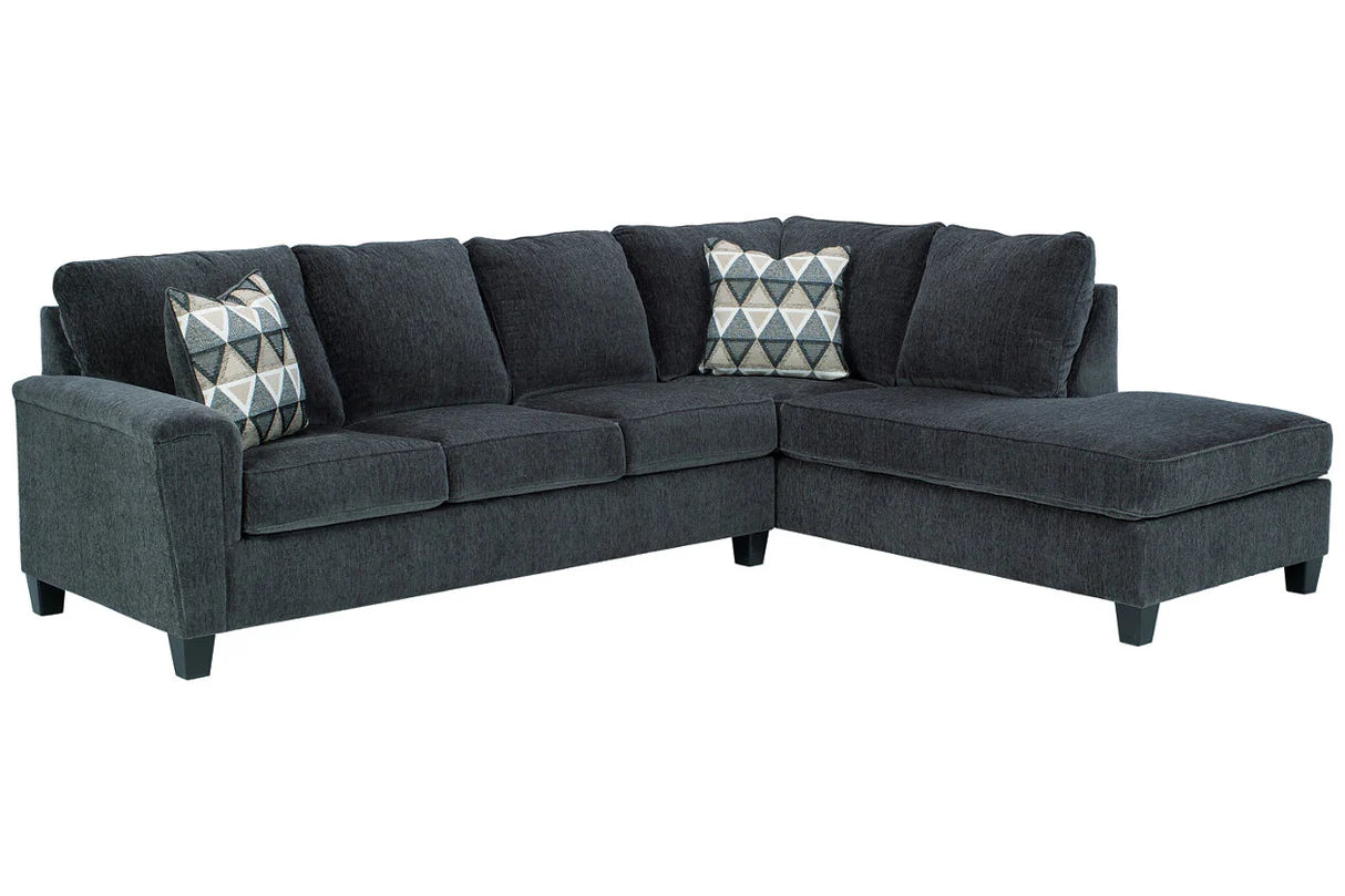 Bring modern comfort and effortless style into your living space with the Abinger 2-Piece Sectional with Chaise by Ashley. Designed with budget-friendly appeal and a clean contemporary profile, this sectional is available in both smoke gray and creme beige chenille options—each offering plush texture and a cozy, inviting feel. The angled side profiling and softly padded track arms add a touch of sophistication, while the open-ended chaise enhances its relaxed, modern silhouette.