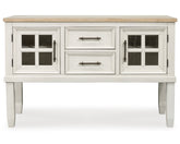 Este mueble de comedor eleva el arte del diseño rústico moderno. Su estética bicolor combina blanco antiguo y marrón grisáceo claro para un acabado encantador. Sus dos puertas con ventana, estantes ajustables y tiradores rústicos oscuros transmiten una sensación de comodidad y relajación. Ahora solo te preocupará qué servir para la cena.