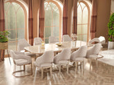Disponible en tonos neutros (generalmente con tapizado en gris claro o crema, según la selección), la silla Paris combina a la perfección con mesas de comedor modernas y de transición. Sus proporciones coinciden con las de otras sillas de 50 cm de ancho del catálogo de Muebles de Estambul.