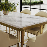 La mesa de comedor Bura de 71" es perfecta para organizar cenas o disfrutar de las comidas diarias con estilo, lo que la convierte en una pieza destacada para cualquier comedor contemporáneo.