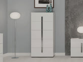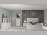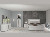 El juego de dormitorio Carrara aporta un toque moderno y elegante a cualquier dormitorio con su acabado lacado blanco brillante y detalles efecto mármol. Diseñado con líneas limpias e iluminación integrada, crea un ambiente sofisticado y fresco. Está disponible en tamaños Queen y King, y en configuraciones de 3, 5 o 6 piezas para adaptarse a diferentes tamaños de habitación y necesidades de almacenamiento.