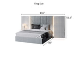 • Cama King : 55,5″ alto × 136″ ancho × 86″ profundidad