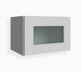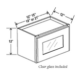Nuestro gabinete de pared simple Shaker gris de 12″ con puerta de vidrio tiene 12″ de alto y está disponible en 4 anchos (12″, 15″, 18″, 21″)