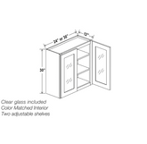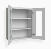 Nuestro gabinete de pared doble Shaker gris de 30″ de alto con puertas de vidrio tiene 30″ de alto y está disponible en 2 anchos (24″, 30″)