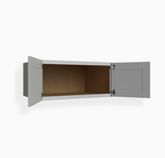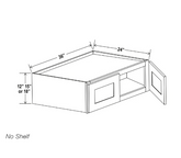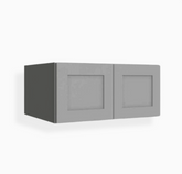 Nuestro gabinete de pared para refrigerador Gray Shaker de 36″ de ancho tiene 30″ de ancho, 24″ de profundidad y está disponible en 3 alturas diferentes (12″, 15″, 18″).