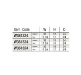 Dimensiones del gabinete: 36″ de ancho x 12″ de alto x 24″ de profundidad, 36″ de ancho x 15″ de alto x 24″ de profundidad, 36″ de ancho x 18″ de alto x 24″ de profundidad