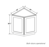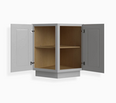 Nuestro gabinete de base auxiliar gris Shaker mide 34,5″ de alto, 24″ de ancho y 24″ de profundidad.