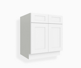 Gabinete base estilo Shaker blanco con puertas dobles y cajones de Moda Cabinetry. Disfrute de precios inmejorables con nuestra opción de financiación sin necesidad de crédito, entrega rápida y el mejor servicio al cliente. Nos enorgullece ser el distribuidor oficial de Moda Cabinetry, ofreciendo una gama de piezas asequibles y elaboradas por expertos que combinan belleza atemporal y diseños elegantes.